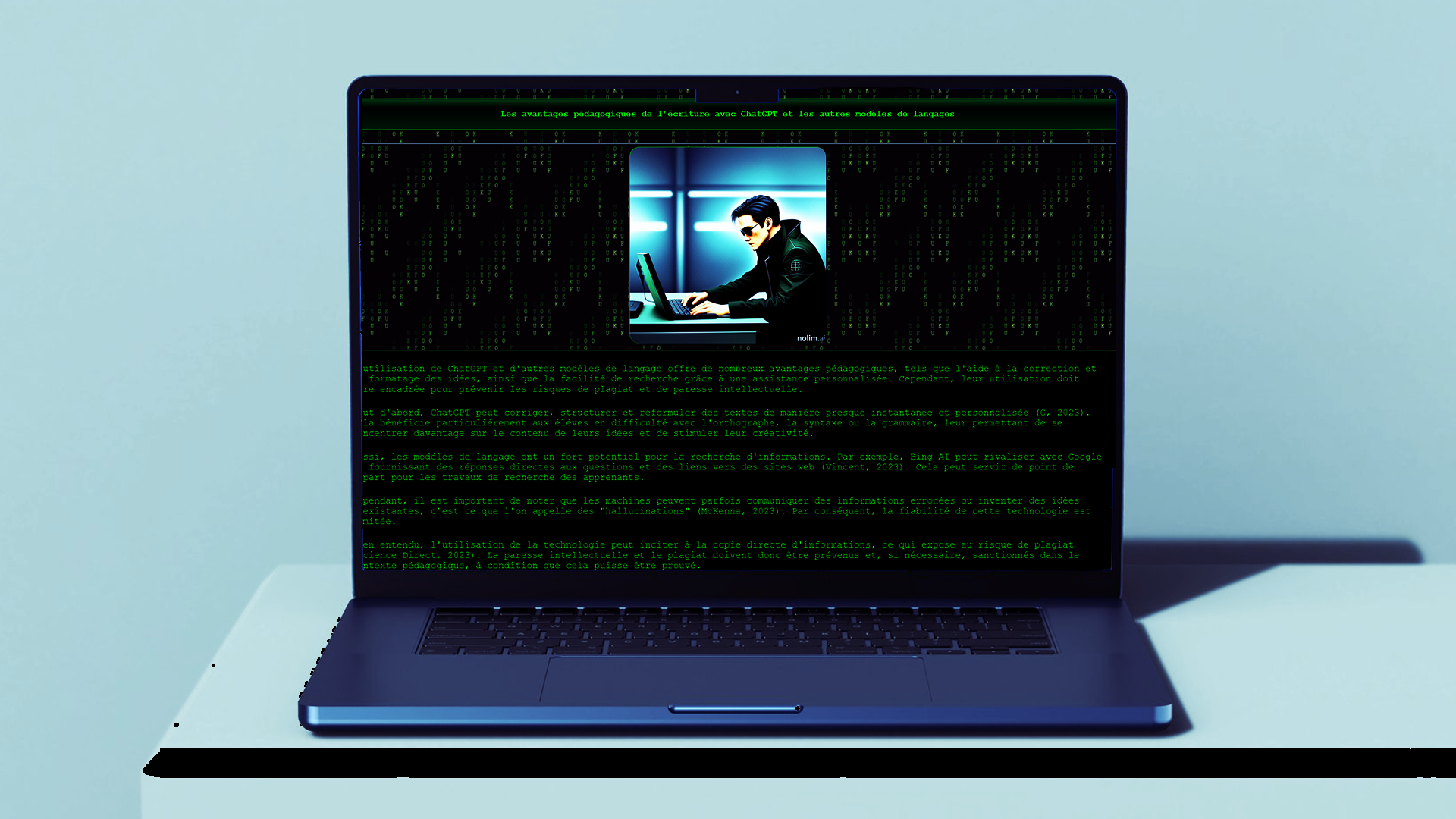 Intitulé « Les avantages pédagogiques de l’écriture avec ChatGPT et les autres modèles de langages », ce projet propose une réflexion critique sur l’usage de l’intelligence artificielle dans le contexte de l’écriture numérique. L’étudiant y explore les apports pédagogiques, mais aussi les limites, de ces outils génératifs à travers une analyse structurée qu’il a lui-même intégrée dans une page web conçue de bout en bout. Le site, codé avec HTML, CSS et JavaScript via Visual Studio Code, adopte une esthétique inspirée de l’univers visuel du film The Matrix, créant un environnement immersif qui soutient le propos critique. Le projet est accessible en ligne via GitHub Education. Cette réalisation témoigne d’une compréhension fine des enjeux liés aux technologies de l’IA, d’une appropriation concrète des outils de développement web et d’une capacité à mobiliser une direction artistique forte au service d’un discours réfléchi sur l’écriture, l’apprentissage et l’innovation pédagogique.