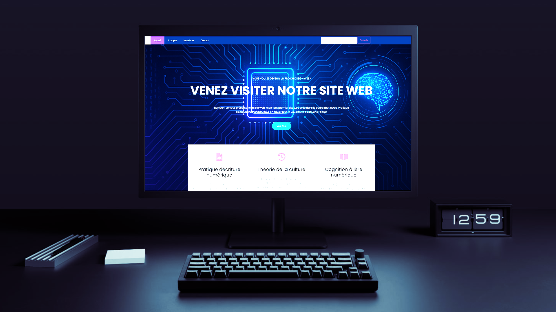 Dans le cadre d’un exercice de création web, Eliza a conçu un site vitrine à l’aide de WordPress et de la version gratuite d’Elementor, avec pour objectif de promouvoir un projet fictif tout en développant ses compétences en design numérique. Plutôt que d’inventer un projet, elle a choisi de mettre en valeur l’Université de l’Ontario français ainsi que notre programme universitaire. Le site présente ces deux éléments de manière claire, avec un ton professionnel et une structure cohérente. Un soin particulier a été apporté à l’esthétique du site : Eliza a élaboré une charte graphique soignée et cohérente, contribuant à donner à l’ensemble une allure moderne et maîtrisée. Cet exercice lui a permis d’explorer les fondements du design web, de la hiérarchisation de l’information et de la création de contenus adaptés au numérique, tout en ancrant son apprentissage dans un projet porteur de sens.