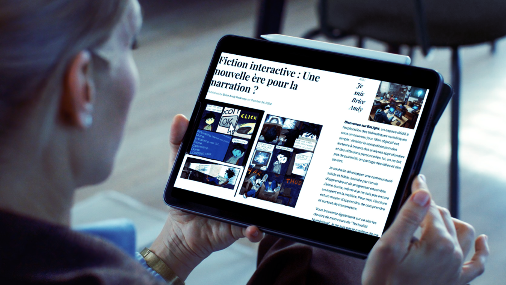 Ce projet prend la forme d’un blogue critique qui interroge le rôle du lecteur dans la littérature interactive et les transformations induites par les outils numériques sur l’écriture et la narration. Brice Andy Fodouop y analyse la fiction interactive comme une évolution des formes littéraires classiques, où l’agentivité du lecteur devient centrale. À partir d’exemples concrets, comme Déprise et un jeu créé avec Twine, le texte compare deux approches : l’une limitant la liberté du lecteur, l’autre offrant une véritable co-construction du récit. Le blogue met en lumière les différences entre les fictions interactives et des outils comme les chatbots, soulignant la richesse narrative des premières. En explorant la notion d’autorité du récit et l’expérience utilisateur, ce travail démontre une compréhension fine des configurations scripturales et des enjeux liés à l’écriture en ligne, tout en questionnant les nouvelles dynamiques entre auteur, texte et lecteur à l’ère numérique.