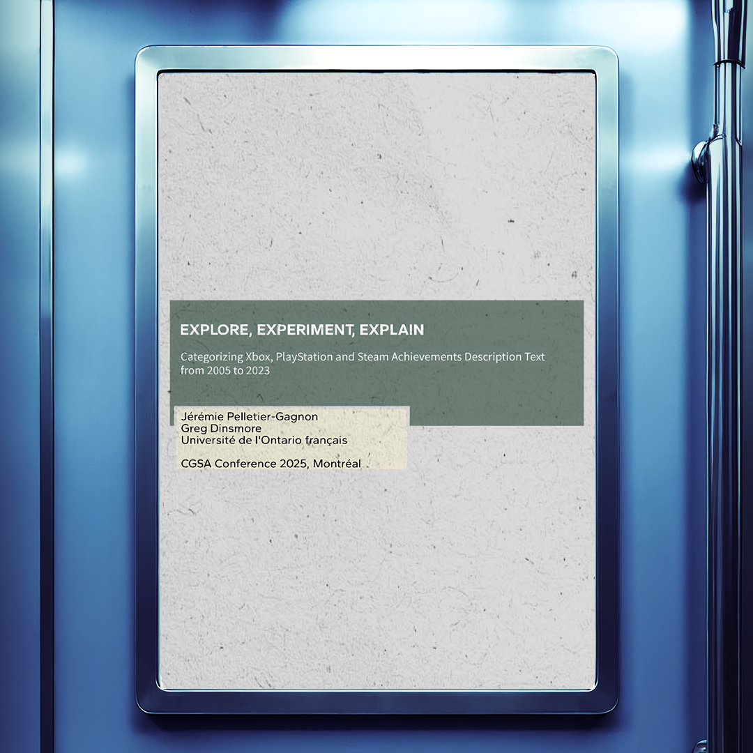 Les professeurs Jérémie Pelletier-Gagnon et Greg Dinsmore ont présenté en 2025 un projet de recherche sur les systèmes de récompenses dans les jeux vidéo, d’abord à Montréal puis à Melbourne. Leur étude, fondée sur une base de données des succès et trophées de Microsoft, Sony et Valve analysée par modélisation LDA, met en évidence deux tendances : la centralité des succès liés à la complétion de la trame principale, renforçant l’impératif marchand, et un glissement culturel où les éditeurs valorisent davantage l’exploration et la narration que la difficulté ou la compétition, ouvrant la voie à des pratiques de jeu plus inclusives.